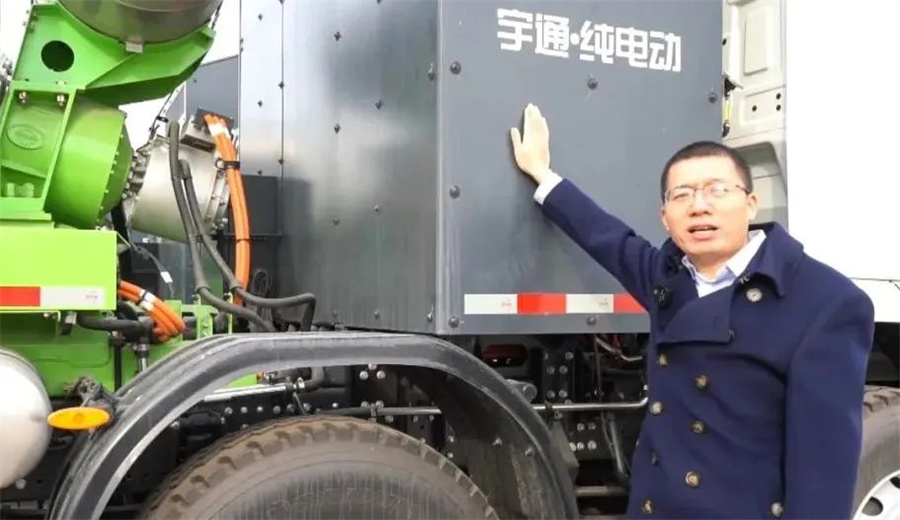 在搶答互動環(huán)節(jié)后,中集凌宇攪拌車技術(shù)部產(chǎn)品項(xiàng)目經(jīng)理許國偉及宇通攪拌車產(chǎn)品管理工程師李飛以“云端直播”的形式為觀眾帶來解放、陜汽及宇通三款新能源攪拌車實(shí)車現(xiàn)場的360度講解。
